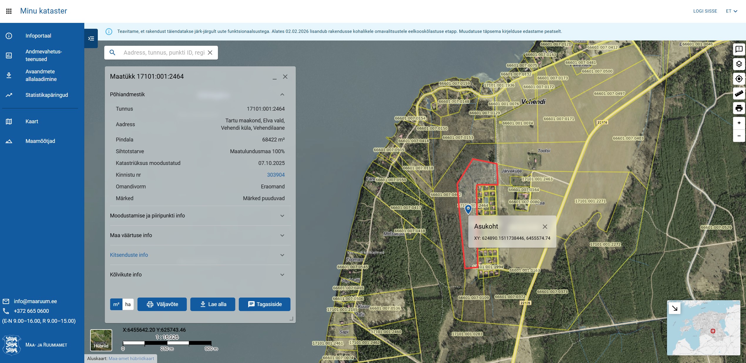 Enampakkumises esitletud informatsioon on koostatud avalike andmete ja müüja kirjelduste põhjal. Tehingukeskus ega müüja ei vastuta objektiga seotud informatsiooni õigsuse eest, mistõttu soovitame enampakkumisel osalejal alati andmeid (nt kinnistu seisukord looduses, looduskaitselised piirangud, jms) kontrollida.