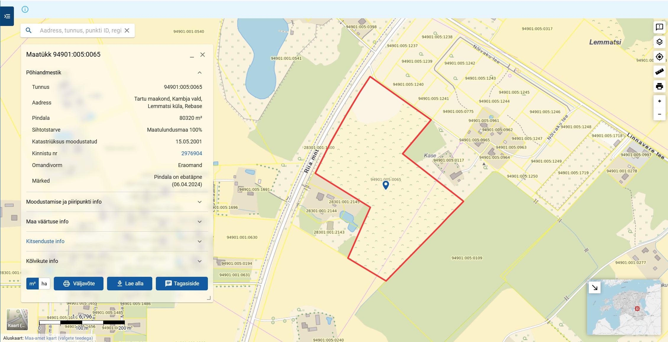 - Kitsenduste kaart on leitav siit: https://kitsendused.kataster.ee/public?code=94901:005:0065