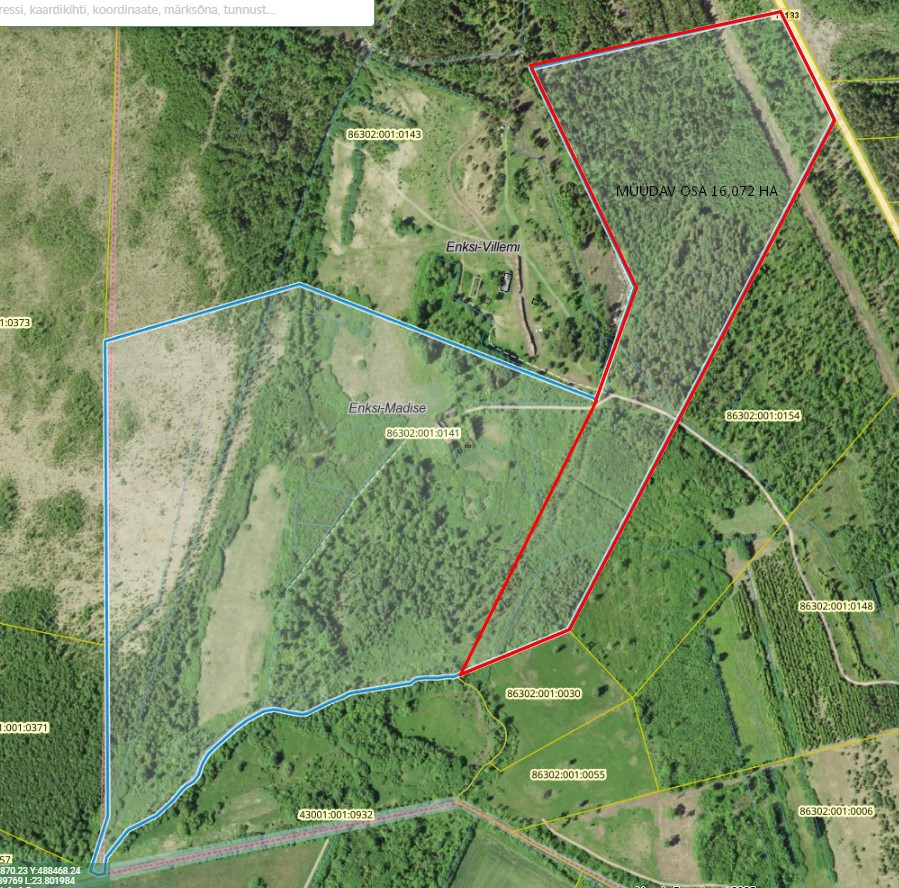- Müüakse pildil olevat viirutamata ala, mille pindalaks on 16,072 hektarit.