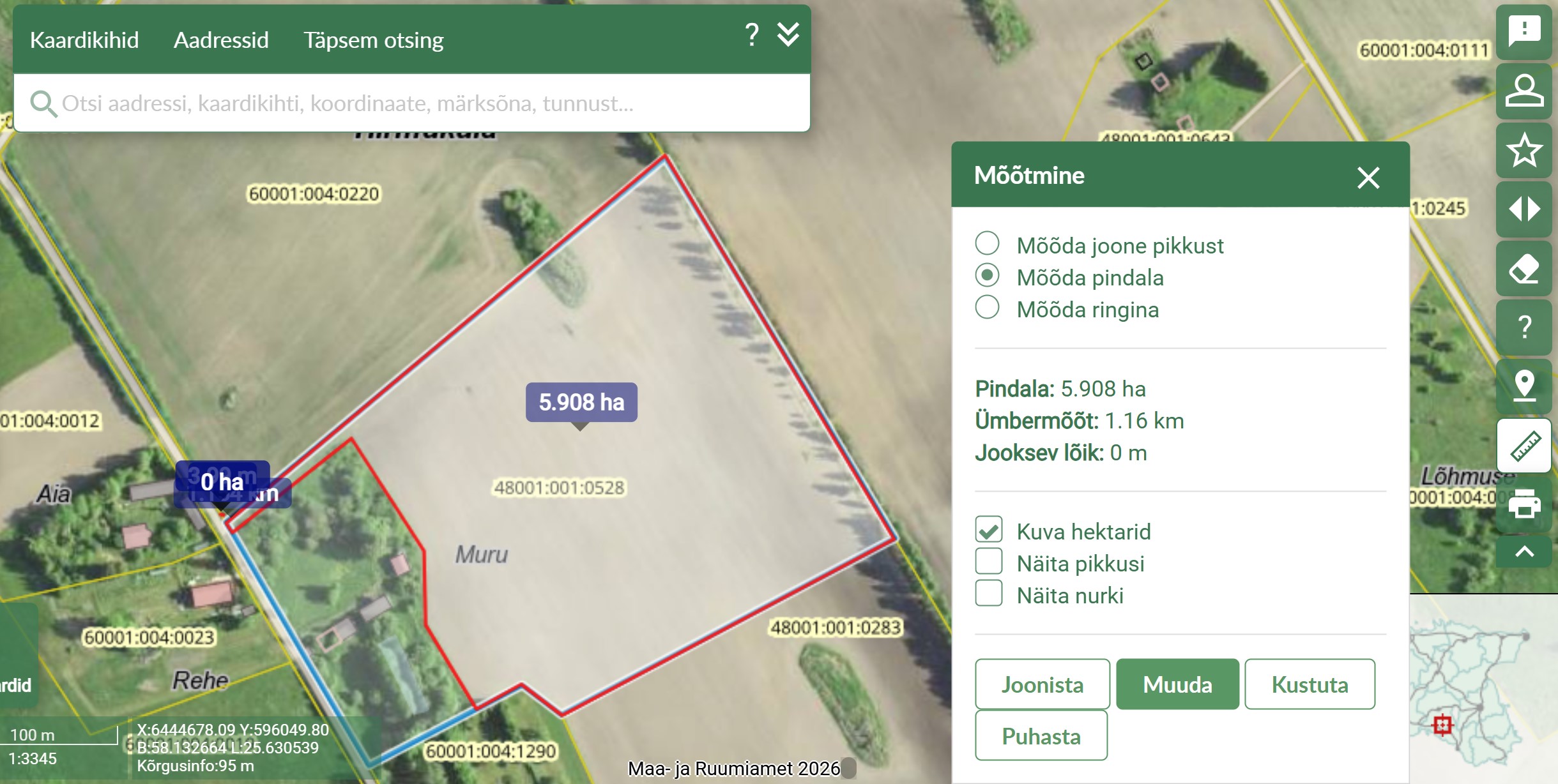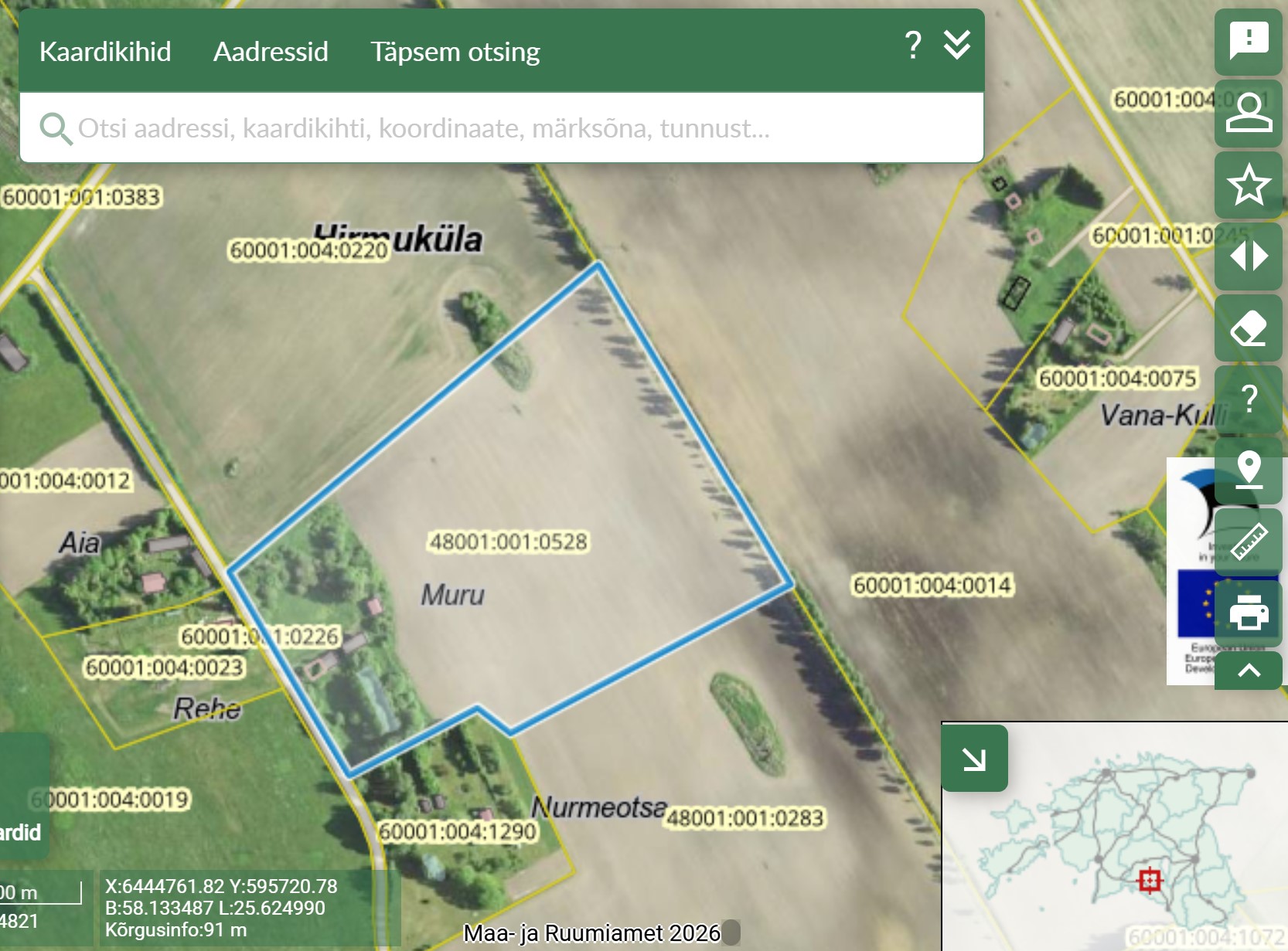 - PRIA-s on arvel haritava maana 5,72 ha. Põllul ei ole kehtivat rendilepingut.