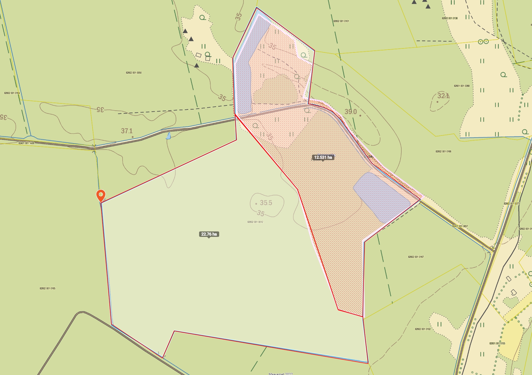 - Müügiks kuulub 22,76 ha suurune osa kinnistust, vastavalt joonisele.