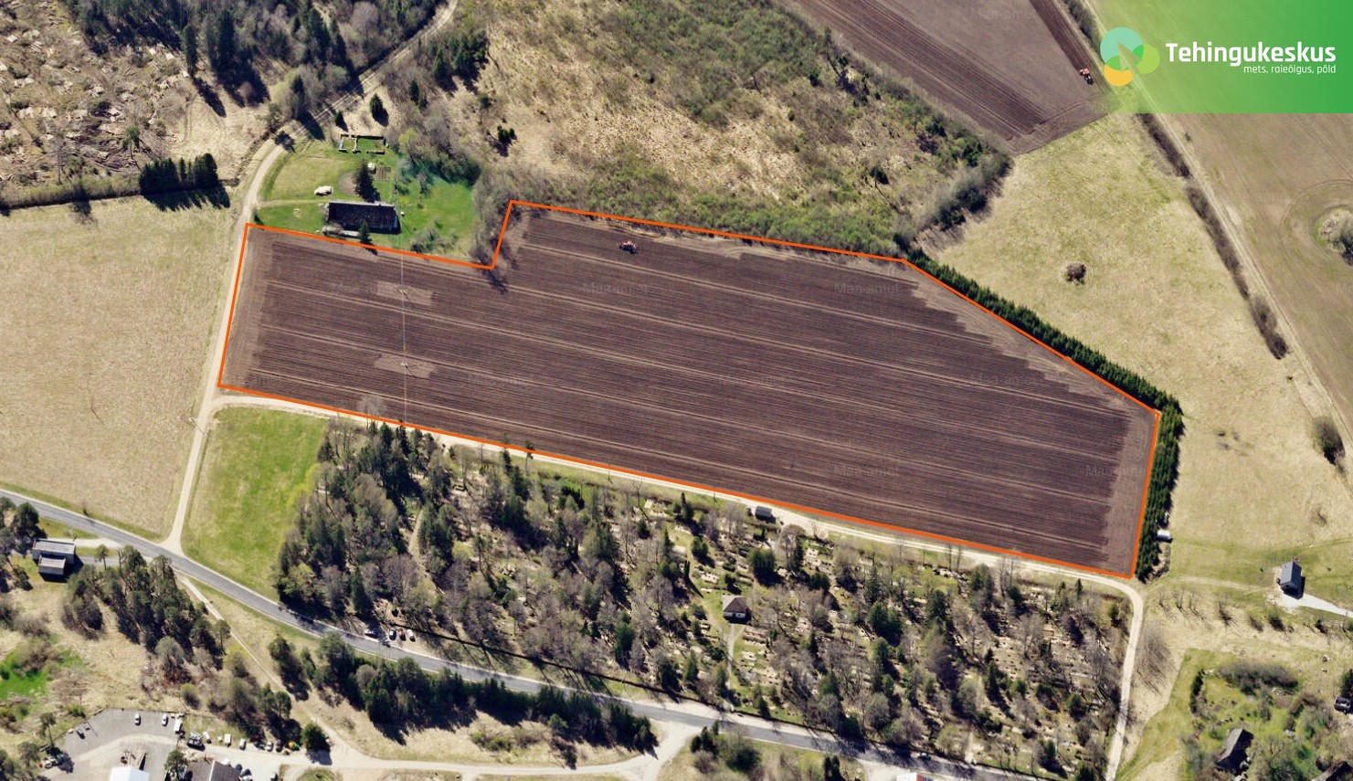 - Foto: Maa- ja Ruumiamet, Maa- ja Ruumiameti Fotoladu. Ortofotol oranžiga kujutatud piirjooned on umbkaudsed ja illustreeriva tähendusega.