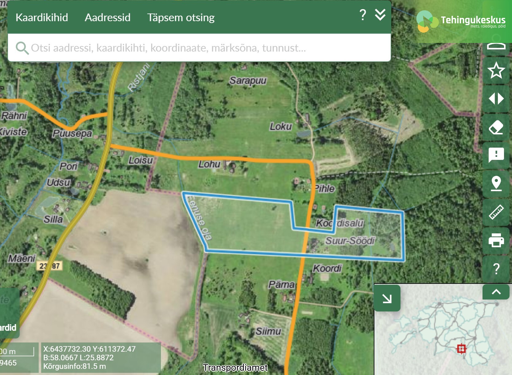 Enampakkumises esitletud informatsioon on koostatud avalike andmete ja müüja kirjelduste põhjal. Tehingukeskus ega müüja ei vastuta objektiga seotud informatsiooni õigsuse eest, mistõttu soovitame enampakkumisel osalejal alati andmeid (nt kinnistu seisukord looduses, looduskaitselised piirangud, jms) kontrollida.