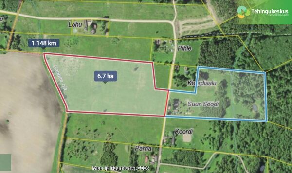 - Müügiks kuulub kinnistust 6,7 ha suurune kinnistu põlluosa, vastavalt joonisele oksjoni lisas.