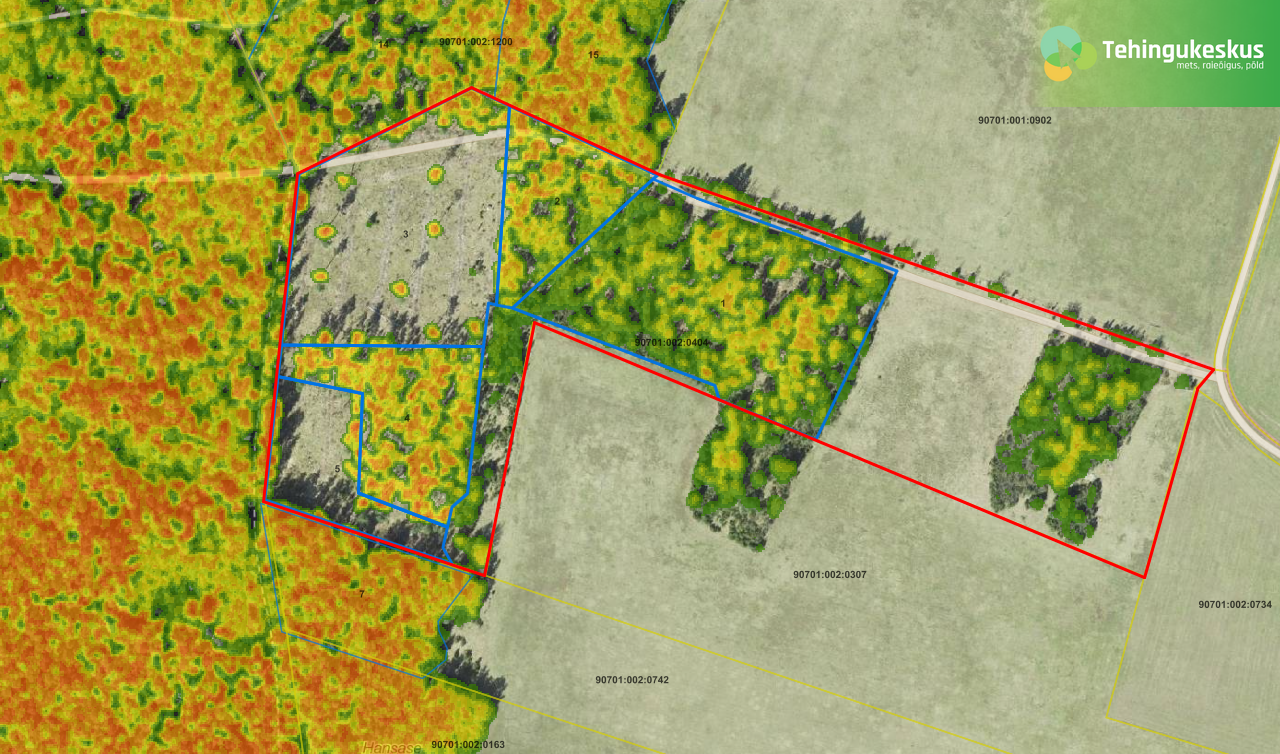 - Fotod: Metsaregister, Maa- ja Ruumiamet & Maa- ja Ruumiameti Fotoladu 2024. Ortofotol oranžiga kujutatud piirjooned on umbkaudsed ja illustreeriva tähendusega.