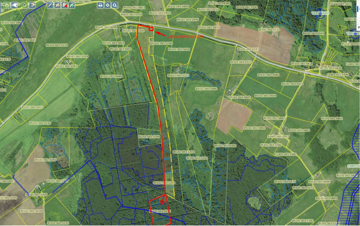- Kinnistule ligipääs kooskõlastatud, kinnistu 85101:003:0311 kaudu, vastavalt joonisele. Lõpliku kooskõlastuse võtab ostja.