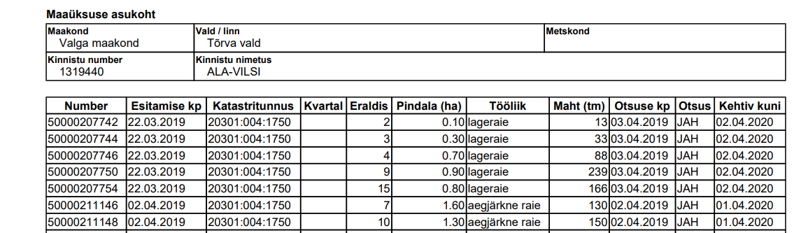 - Pildina on lisatud 2019.a raiutud eraldised ja mahud.
